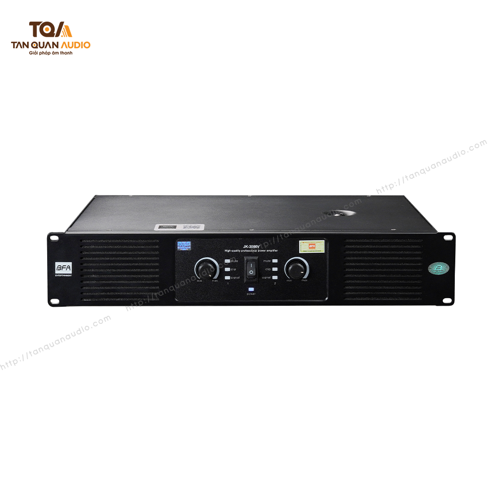 Bộ khuếch đại công suất BFAUDIOPRO JK-3000V là một thiết bị chuyên dụng được thiết kế cho các hệ thống âm thanh chất lượng cao như karaoke gia đình, phòng hội trường nhỏ hoặc quán cà phê.