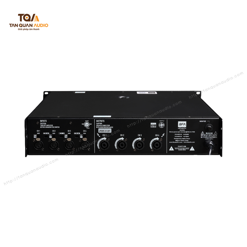 Kết nối: Tích hợp 4 cổng XLR cho tín hiệu đầu vào và 4 cổng XLR cho tín hiệu đầu ra, cùng với 4 cổng Speakon NL4 để kết nối loa.
