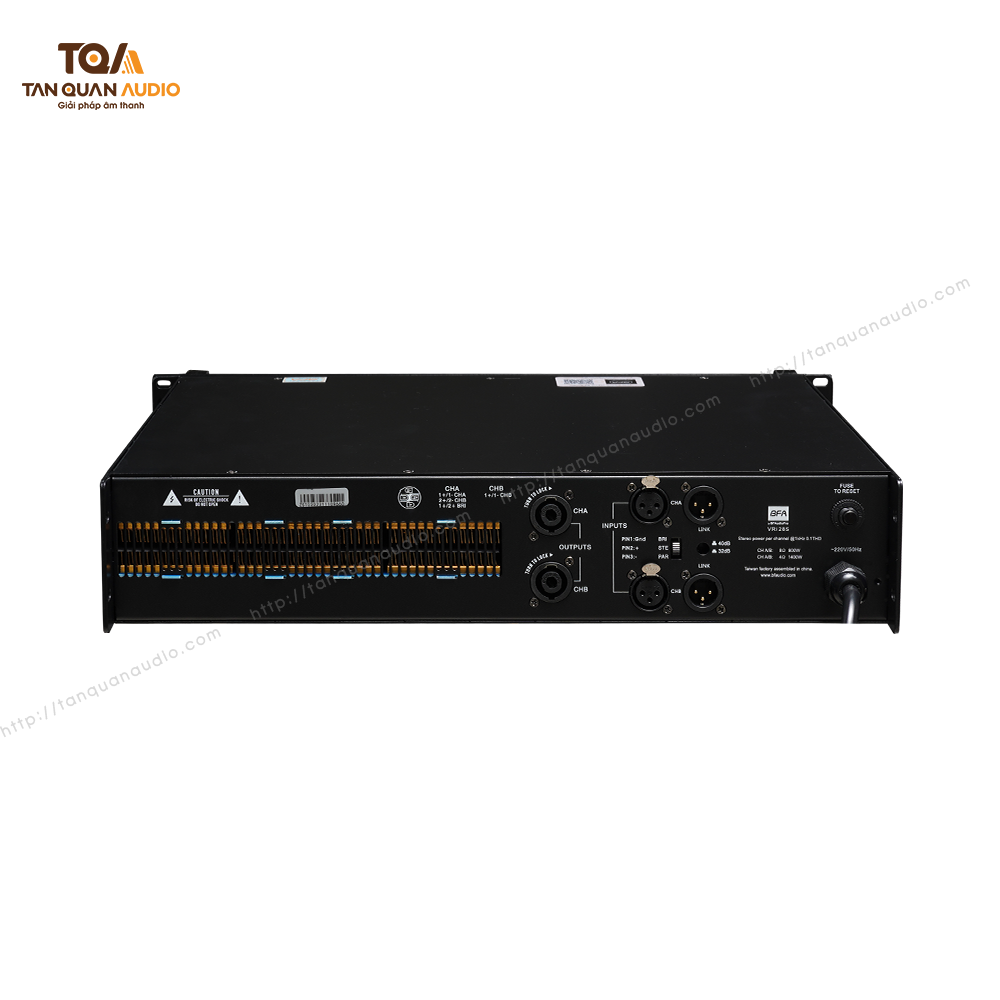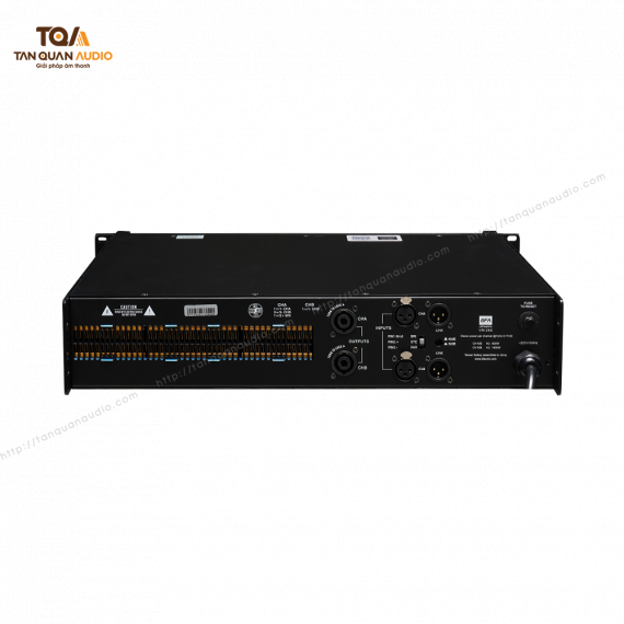 Các tính năng bảo vệ tích hợp bao gồm mạch khởi động mềm, bảo vệ quá tải, phát hiện ngắn mạch, bảo vệ quá nhiệt và chống rò điện DC ngõ ra, giúp bảo vệ toàn diện thiết bị khuếch đại và các thiết bị âm thanh ngoại vi. Giao diện người dùng được tối ưu hóa với công tắc lựa chọn độ nhạy đầu vào, điều khiển âm lượng độc lập cho từng kênh, và các chỉ báo LED hiển thị trạng thái nguồn và tín hiệu. Về kết nối, thiết bị được trang bị 2 cổng XLR cho tín hiệu đầu vào và 2 cổng XLR cho tín hiệu đầu ra, cùng 2 ngõ ra loa Speakon, tạo điều kiện thuận lợi cho việc tích hợp vào các hệ thống âm thanh chuyên nghiệp.